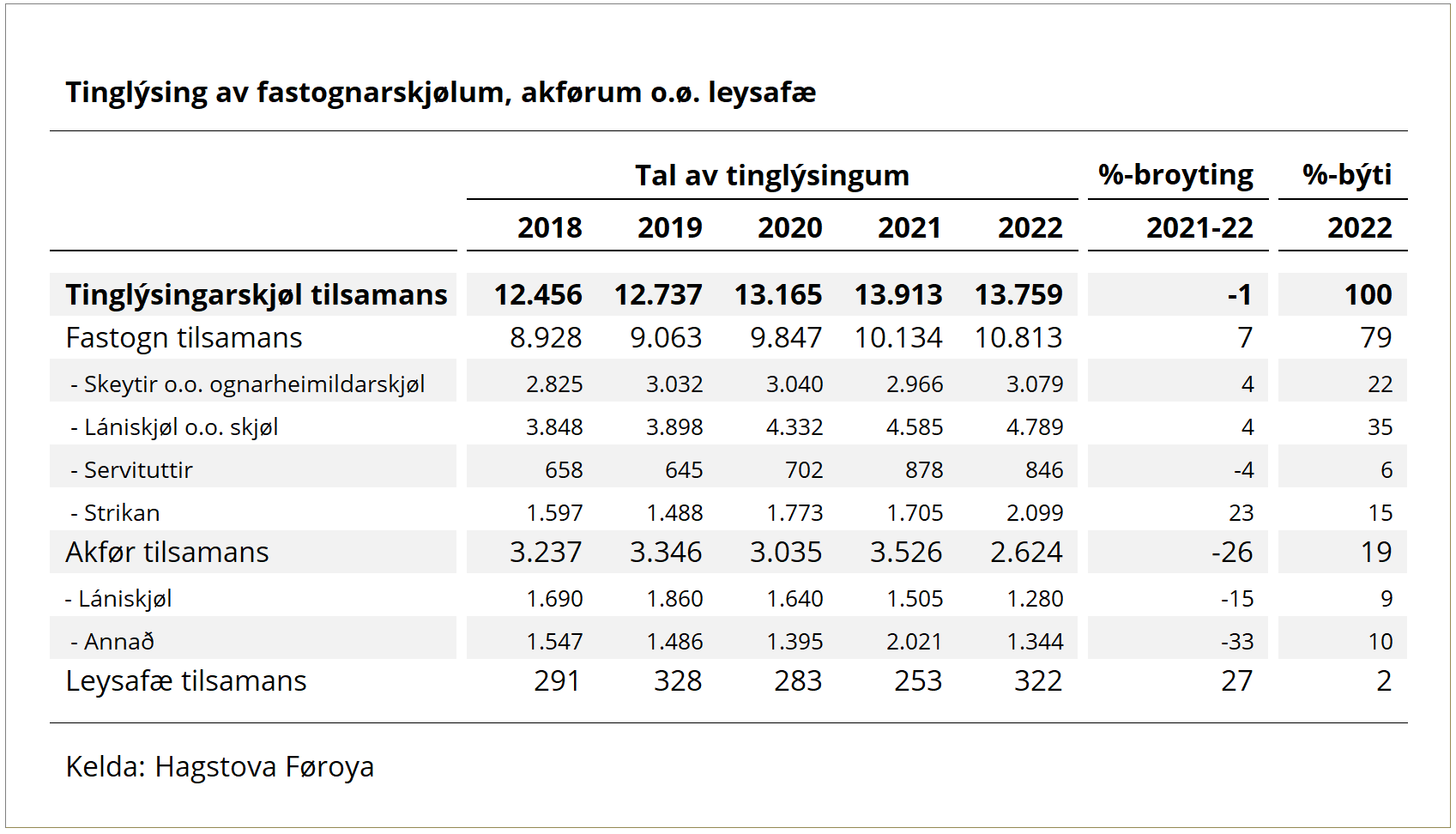 Fleiri tinglýsingarskjøl um fastognir, færri um akfør